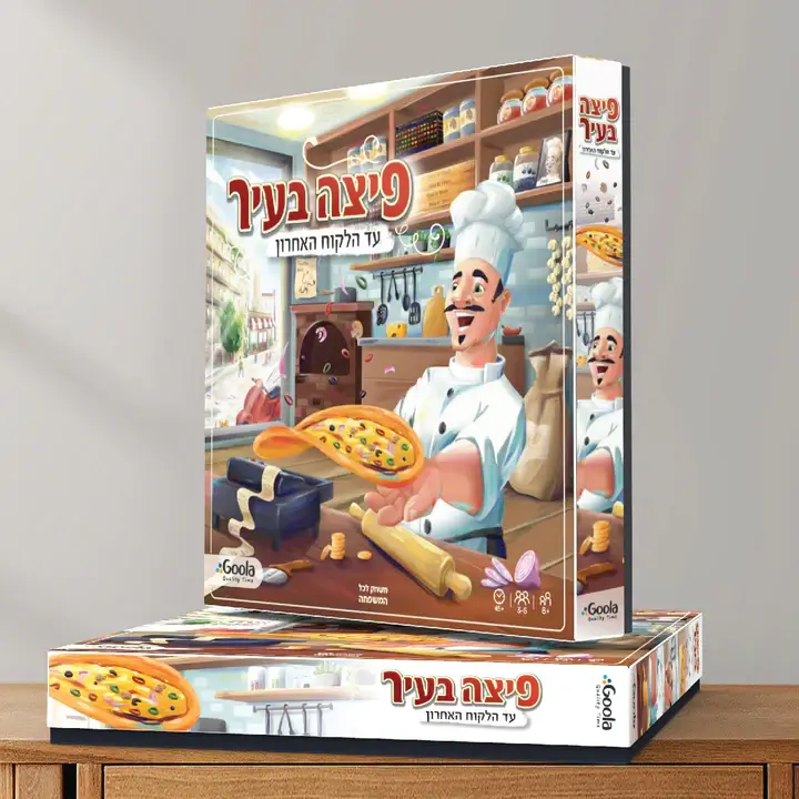 משחק שבו כל שחקן פותח פיצרייה משלו! על כל שחקן לשרת לקוחות, להרוויח כסף באמצעותו ניתן לרכוש מגוון אפשרויות, לשדרג את הפיצרייה ולהתקדם במשחק. ניתן לעשות עסקים עם הפיצריות השכנות של שאר השחקנים. בעזרת מסחר נכון עם השחקנים האחרים, התנהלות נכונה וגם מזל תוכלו להתקדם במשחק! השחקן הראשון שהצליח לשרת 10 לקוחות הוא המנצח! המשחק הינו דינאמי, מרתק, תחרותי ושיתופי כאחד, מתנהל בקצב מסחרר, משאיר את השחקנים מרותקים, מלאי התלהבות. המשחק מזמן תקשורת בין אישית, שכלול הכישורים החברתיים ויכולת השכנוע, מעניק תחושת העצמה וכמובן שכיף לשחק אותו!